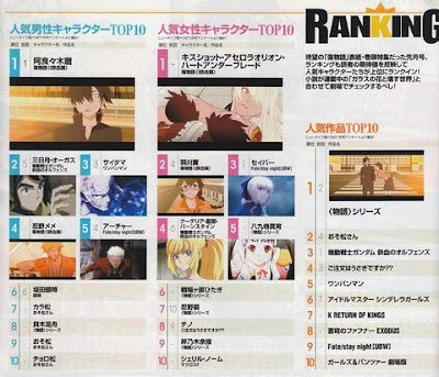 Setiap bulannya akan ada perubahan mengenai karakter-karakter anime terbaik. Dan untuk edisi yang terbaru majalah anime Newtype sudah merangkap 10 karakter cewek, 10 karakter cowok, dan 10 anime terbaik versi mereka.