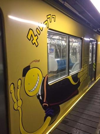 Kereta unik yang bertema Assassination Classroom yang melaju di rel kota Tokyo sejak tanggal 6 April 2015 kemaren. Kereta dengan warna dominan kuning ini berbalut gambar Korosensei dari anime Ansatsu Kyoushitsu atau Assassination Classroom yang saat ini tengah Ongoing.