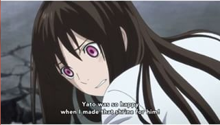 Sayangnya, tidak ada satupun yang tahu nama asli Yato. Meski begitu, Hiyori tidak mau menyerah, dia terus memanggil nama Yato di tepian lubang angin. Hingga tiba-tiba dia teringat tulisan nama di pintu kuil kecil yang dibuatnya untuk Yato.