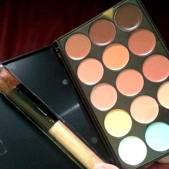 Sinma 15 Colour Face Cream Makeup Concealer Palette Foundation with Powder Brush Set.