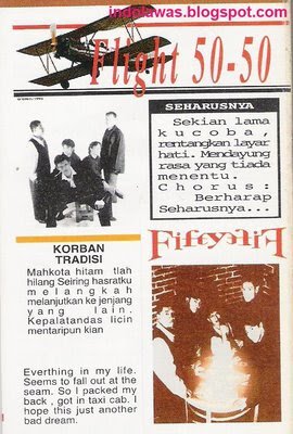 Produksi : Musica Studio’sIndustri musik memang tidak pernah berhenti menghasilkan nama-nama baru. Dan di era 90an, industri musik Indonesia banyak dihiasi oleh band-band baru yang mencoba peruntungannya. Beberapa nama berhasil berkibar dan bahkan menjadi band besar yang masih eksis sampai saat ini, tapi lebih banyak lagi yang bernasib kurang baik, harus tunduk pada hukum pasar yang memang susah diprediksi. Salah satu kelompok yang muncul dan hanya ‘sekejap’ meramaikan industri musik Indonesia adalah FIFTY FIFTY. Mereka adalah ALFIE, ARIEF, RUBUSEY, SENO dan ULLY. Kehadiran mereka sempat disambut bagus lewat album debut KANIA yang meljitkan single KENANGKAN. Mereka pun kemudian merilis album kedua FLIGHT 50-50 dengan single andalan SEHARUSNYA. Album kedua mereka juga berhasil mengangkat lagu SEHARUSNYA menjadi radio hits, meskipun agak rancu karena pada saat yang hampir bersamaan ADA BAND juga meluncurkan album perdana dengan hits yang juga berjudul SEHARUSNYA dan sama-sama menjadi radio hits. Sayangnya persaingan di industri musik kita memang cukup kompetitif. Fifty Fifty tidak mampu lagi bersaing dan hanya beberapa saat saja berkibar meskipun mereka punya kans untuk bisa lebih mengemuka.