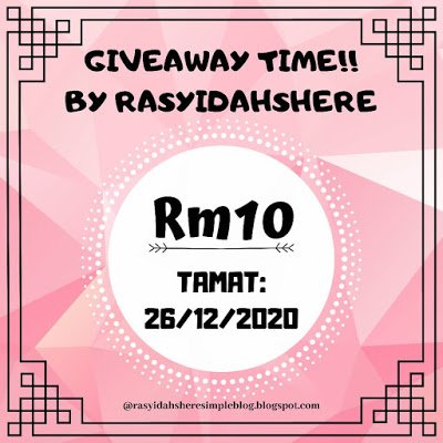 Selamat Hari Jumaat semua. Harini cuti bagi sesiapa yang ada di Selangor. Termasuk la diri sendiri. Jadinya, tengah berkelapangan waktu ni, kita belek la blog. So, harini nak join giveaway dari Syidah. Dengan harapan,semoga terselit la rezeki. Cuba nasib saja ni. Jom kira ramai- ramai memeriahkan lagi giveaway dari sister Syidah ni.