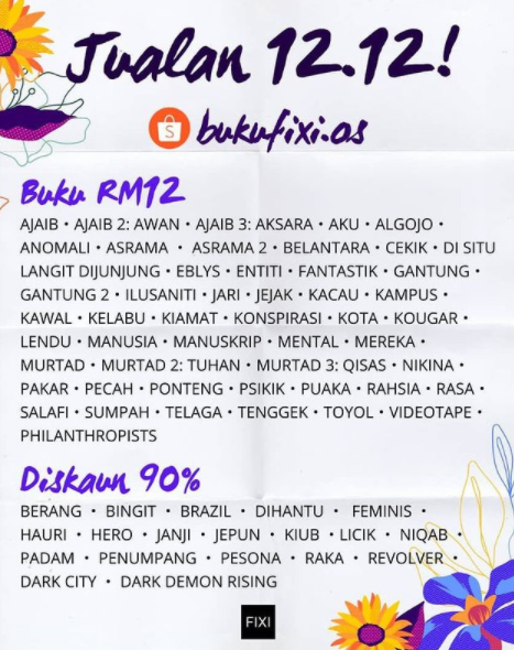 To be honest, ika dah mula kurang membeli buku FIXI atas sebab-sebab tertentu melainkan kalau ika betul-betul rasa macam nak baca sangat. Then, ika prefer beli ebook dari physical book. Antara sebab sampingan ialah ika dah kekurangan space untuk simpan buku. Jadinya, sementara nak fikirkan cara nak banyakkan lagi ruangan menyimpan. Ika beli ebook dulu. Untuk 12.12 ni kita langgar! Nak letak mana? Fikir kemudian. Haha