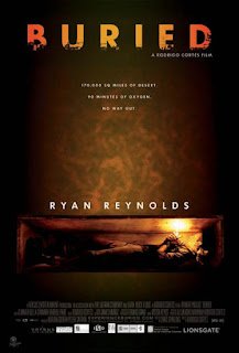 Bisa dibilang Buried ini adalah film misteri, dalam arti film ini bergerak karena ketidaktahuan—ketidaktahuan si tokoh sekaligus penontonnya, dan kalo gw ceritain plotnya sampe sedetil mungkin bakal mengurangi kenikmatan menonton—bagi yang belum nonton tentu saja. Cukup dengan satu kalimat “Paul Conroy (Ryan Reynolds), seorang sopir truk untuk sebuah perusahaan konstruksi Amerika di Irak (pasca invasi AS tahun 2003) dikubur hidup2 dalam peti ditemani sebuah BlackBerry® *lho kok iklan*”, selebihnya silahkan ditonton sendiri, karena film ini dengan cukup pintar membuka halaman demi halaman tentang apa yang terjadi, siapa yang mengubur Paul, kenapa dia harus dikubur hidup2 dan dikasih BlackBerry® *iklan lagi* yang baterenya bocor, juga sekaligus sedikit demi sedikit mengekspos tentang Paul sendiri hanya dari percakapan telepon yang dilakukannya dengan beberapa orang saat berusaha minta tolong, yang uniknya hanya diambil dari sudut pandang Paul yg dikubur…ya, setingnya selama 90 menit film ini hanya cuma di dalam peti mati saja belaka.