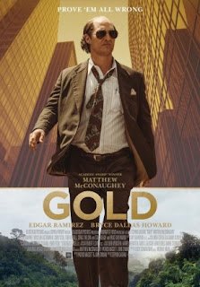Gold menitikberatkan pada kiprah Kenny Wells (Matthew McConaughey) dalam upaya terakhirnya meraih kesuksesan, setelah ia membuat perusahaan investasi tambang Washoe warisan ayahnya (Craig T. Nelson) di Reno, Nevada *inget Sister Act*, Amerika Serikat mengalami kebangkrutan di penghujung era 1980-an. Upaya untuk bangkitnya itu diawali oleh mimpi menemukan emas di tengah hutan belantara Indonesia *=D*, dan ia bermaksud mewujudkan mimpinya itu. Nekat, ia lalu menggandeng Michael Acosta (Édgar Ramírez), pelacak tambang ternama untuk terjun ke tengah hutan hujan tropis Kalimantan dan membuktikan mimpinya itu, sekalipun harus menggadaikan sisa-sisa harta yang dia miliki. Selama berminggu-minggu Michael dan Kenny mencoba bertahan di ganasnya hutan, demi memimpin penggalian tanah sampai ketemu emas. Ketika nyaris putus asa, akhirnya Michael menyampaikan mereka menemukan emas, dan kemungkinan ada berton-ton emas lainnya di bawah tanah sana. Dengan adanya penemuan ini, langkah selanjutnya adalah mencari investor untuk membuka pertambangan di lokasi tersebut. Di sinilah masalah mulai merumit, ketika banyak pihak dengan pengaruh modal dan politiknya ingin mengambil bagian, sementara Kenny yang take everything about this personally emoh untuk lepas tangan dari proyek ini.
