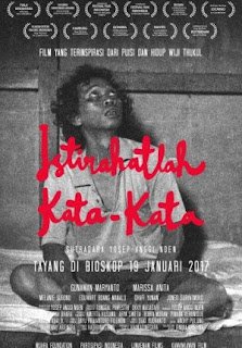 Bekal gw untuk menyaksikan Istirahatlah Kata-Kata terbilang sedikit. Film ini ingin mengangkat sosok Wiji Thukul, penyair yang gw baru dengar namanya hanya beberapa tahun belakangan lewat linimasa media sosial, dan gw juga nggak familier dengan karya-karyanya. Yang gw tahu hanyalah beliau salah satu dari orang-orang yang cukup vokal menentang rezim Orde Baru yang tercermin dalam puisi-puisinya, dan jadi salah satu korban hilang—atau penghilangan, one of many Orde Baru things—sebelum reformasi pecah di tahun 1998. Wiji Thukul pun menjadi salah satu simbol dalam menuntut keadilan kepada negara, sebab keberadaannya serta beberapa orang lain yang senasib belum terungkap bahkan sampai saat ini ketika rezim sudah berganti. Dengan latar demikian, mengangkat sosoknya ke film pasti nggak bisa lepas dari aktivismenya serta situasi Indonesia pada masa itu. Namun, film ini ternyata lebih memilih nggak menunjukkan aktivisme ataupun proses hilangnya dia. Lalu apa dong?
