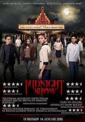Akhirnya, Film Indonesia bergenre horror-thriller-slasher kembali muncul diawal tahun 2016 ini setelah RUMAH DARA (2009), KILLERS (2014) dan THE RAID 2 (2014) yang penuh aksi berdarah-darah dan sadis, kini Renee Pictures yang sebelumnya sukses dengan Film TUYUL PART 1 (2015) ini menghadirkan sebuah film thriller-slasher berjudul MIDNIGHT SHOW arahan sutradara muda Ginanti Rona.