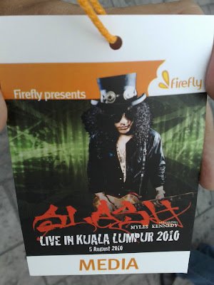 Mungkin aku yang paling awal sampai. Lebih kurang setengah jam kemudian, barulah nampak mereka-mereka yang berperangai seperti wakil dari media. Tangan menggenggam buku nota atau helaian kertas yang nampaknya seperti soalan-soalan yang telah disusun dan bakal ditanya nanti. Ada juga yang membawa kamera DSLR. Mereka saling tegur menegur antara satu sama lain. Sudah tentu mereka sudah mengenali kerana itu kerja hakiki mereka. Aku agak terpinggir. Ini sesi pertama. Sudahlah sesi pertama, dengan gitaris terunggul dunia pula tu! The Time telah letak Slash sebagai gitaris terhebat no dunia, kedua kepada JIMI HENDRIX.