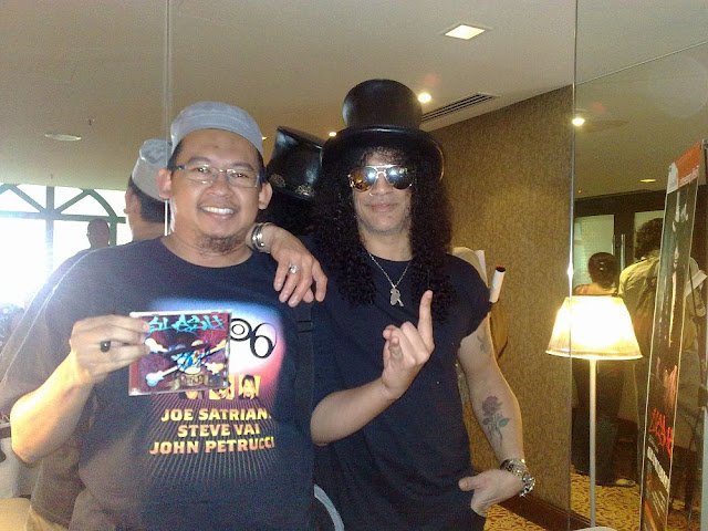 Aku pun bukanlah peminat tegar Slash. Aku tak minat pun Guns N Roses selain dari lagu-lagu hits kebiasaan seperti Sweet Child O Mine, Knockin’ On The Heaven’s Door dan sebagainya. Semasa demam GnR dulu, aku di MRSM. Aku Mat Underground masa tu. Apa-apa yang tidak underground, aku akan cebik mulut. Dan aku tak pernah peduli dengan album-album Slash post-GnR. Slash N Snakepit, Velvet Revolvers adalah nama yang aku dengar tetapi tak berahi langsung untuk ambil tahu. Sehinggalah album solo pertama Slash, diterima dari Universal Music. Sekali dengar dan WOW, ini sudah bagus!