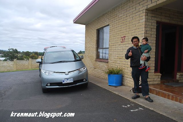 Di depan cabin (walaupun bentuk motel binaan batu) dan bersedia untuk perjalanan seterusnya. Sarapan sendiri-sendiri cuma masak untuk lunch dan dinner je yang tanggungjawab kena prepare.Sebelum bertolak ke Melbourne, kami bercadang nak explore beberapa tempat menarik sekitar Mt Gambier ni.