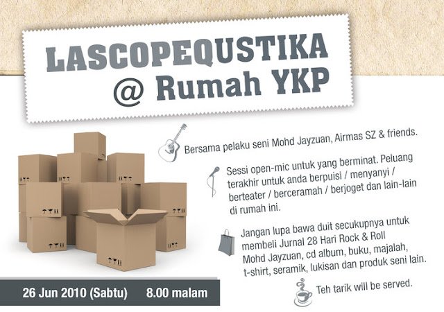 Enter YKP @ Yayasan Kesenian Perak yang diterajui oleh Puan Hanim. Flyer yang disebarkan di dalam facebook ditag nama aku, begitu mengkecurkan air liur. Aku yang baru sampai dari Kuala Terengganu bersama family, memujuk kepenatan diri untuk hadir sekali. Ini mengejutkan Kamal Sabran. Malah mengejutkan Puan Hanim juga.